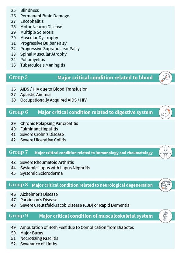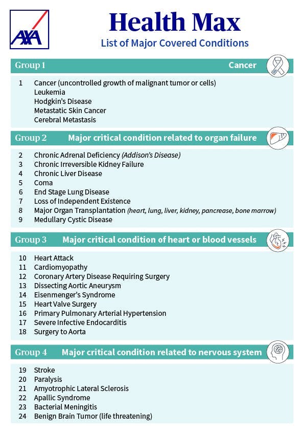 Please refer to your Health Max policy for the definition and qualification of each of the listed illness.