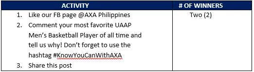 17. AXA Philippines may change the dates and/or terms of the contest without prior notice.